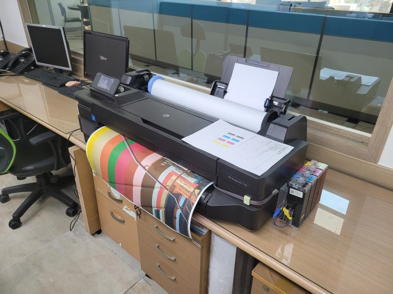 경상남도 양산시 소재, 건축건설 관련 업체 사무실에서 도면 출력용으로 사용하는 HP DesignJet T120 24인치 플로터 A1 출력 대형 프린터 무한잉크인데 출력불량으로 출장수리 요청하여 스케줄 잡아 방문 출장 수리를 완료했습니다.