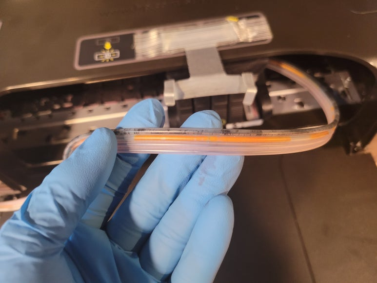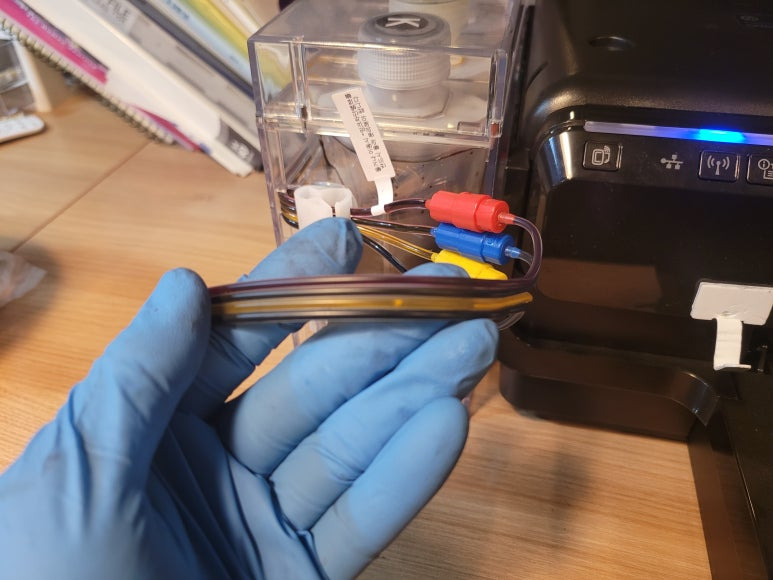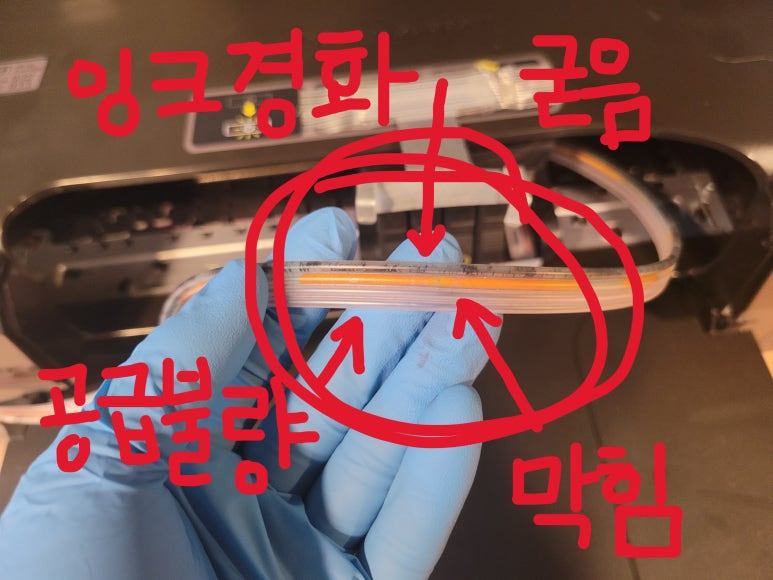 ● 호스 내부 잉크경화 막힘, 세정액 주입 세척