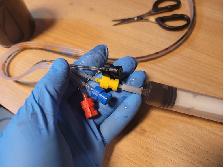 ● 호스 절단 및 하우징 타공, 잉크 퀵차단밸브 장착