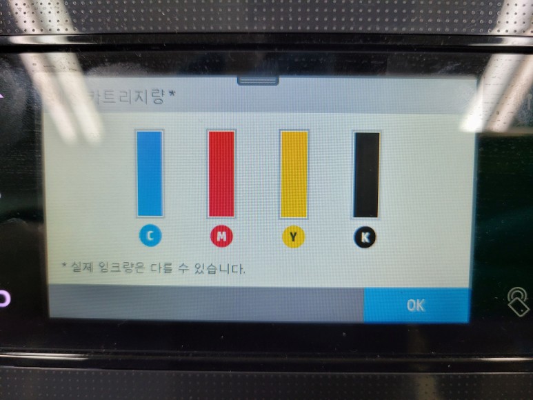카트리지를 재장착하고 정상적인 카트리지 잉크량 화면을 체킹했습니다.