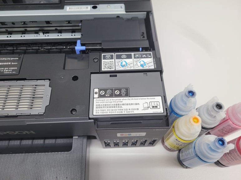 그래픽 관련 제작 및 개발관련 프린팅을 하기 위해 전문 포토 프린팅 가능한 프린터인 엡손 L8050 6색 A4 프린터로 출장설치 요청하여 스케줄 잡아 이동, 출장 설치 완료했습니다. 특수목적지 및 중량지 출력에 가장 적합한 후면 배지 급지방식의 A4 6색 프린터 입니다. 누구나 컴퓨터에 쉽게 연결되고, 모바일 출력도 가능한 프린터로 사진 인화지는은 물론이고, 디자인 및 그래픽, 메뉴 및 홍보물, 중량지 출력에 가장 적합한 프린터였습니다.
