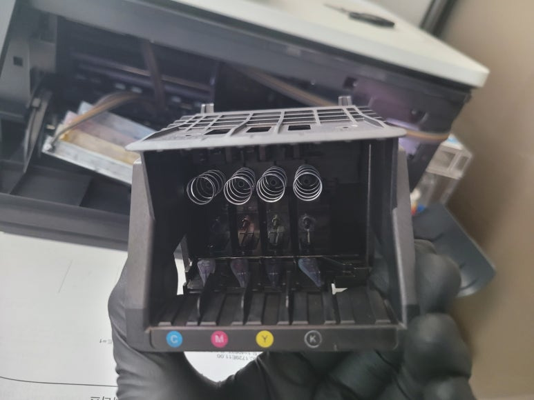 cf. 잦은 헤드 청소는 잉크손실, 내부오염, 헤드 노후화 및 칩판부 슈팅에어라인 비닐탈락, 챔버**터짐, 노즐 훼손, 헤드 챔버 내부 크랙 등 영향을 줍니다. 꾸준한 주기적인 4색 출력 관리가 필요합니다. 열분사 방식으로 잉크가 빠진 상태에서 사용시 헤드 노즐이 타서 망가질 수 있으니 사용자재 바랍니다