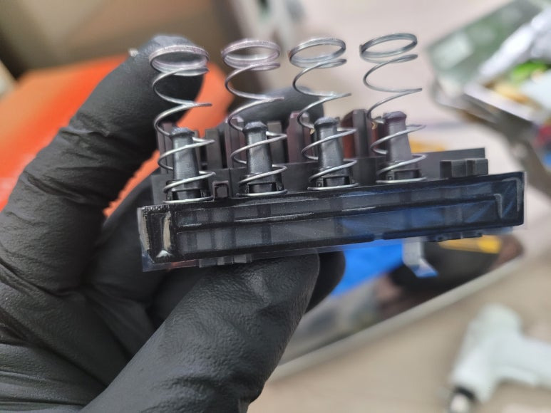 출력불량 및 잉크 카트리지 문제로 빠른 전체 점검 필요 이유 : 1. 호스 내 잉크 경화로 잉크공급 不 2. 카트리지 부싱 및 패킹 노후로 공기유입으로 잉크공급 不 3. 헤드 內 잉크공간 챔버 터짐 (칩판부 슈팅에어라인 비닐탈락, PCB 오염) 4. 스테이션 펌핑모터 불량으로 인한 잉크공급 不