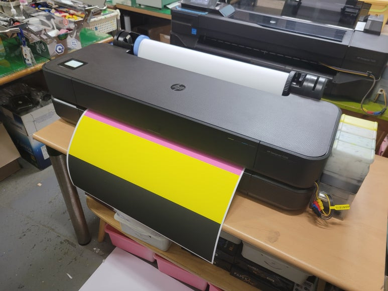 POP 피오피 홍보물 및 A1 A2 포스터 출력용으로 사용하는 HP DesignJet T230 24인치 플로터 A1 출력 대형 프린터 무한잉크인데 잉크 카트리지 소모됨으로 출장수리 요청하여 스케줄 잡아 방문 출장 수리를 완료했습니다.