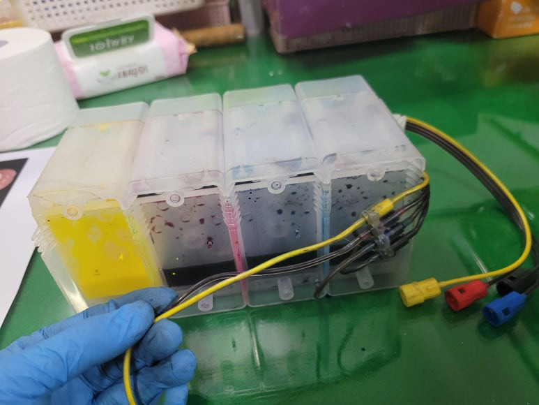 ● 공급기 잉크공급라인 호스 신규 교체 및 카트리지 호스 세정액 주입 세척