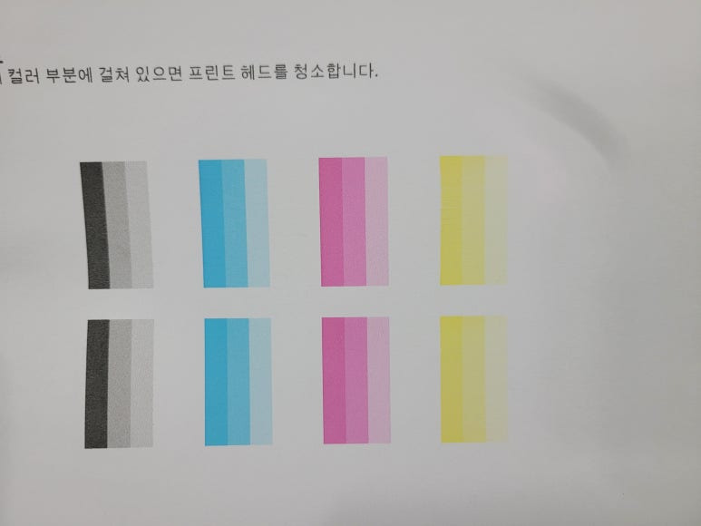 2) 매일 체크하지 않으면 노즐이 미세하게 막히면 헤드 청소를 해야 하는데 헤드청소시 이때, 잉크가 정말 많이 사용됩니다. 잉크 낭비까지 생각한다면 평소 출력해 체킹하는 게 좋습니다.(고지혈/동맥경화시 의료비가 듭니다)