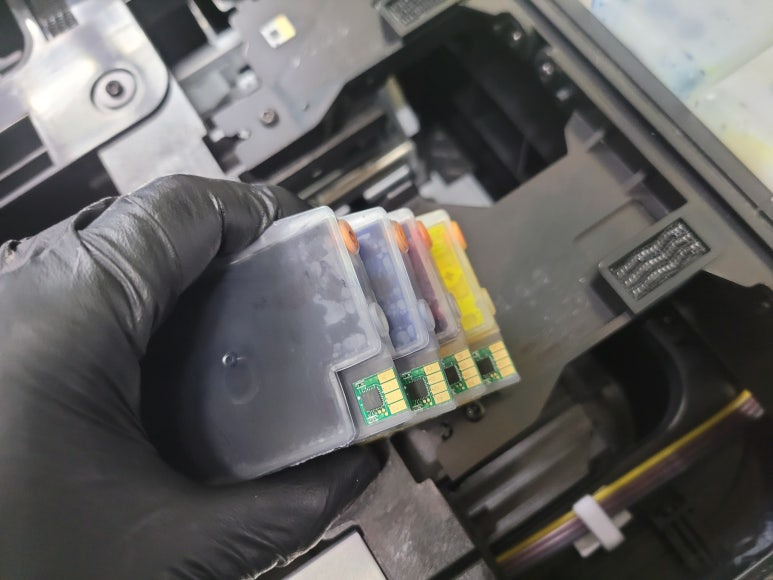 ● 카트리지 잉크 석션 패킹 부싱 공기유입점검 및 잉크 차징