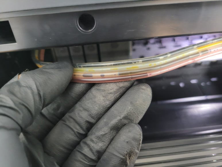 ● 호스 내부 잉크 경화 호스 절단, 퀵차단밸브 장착 및 세정액 주입 세척