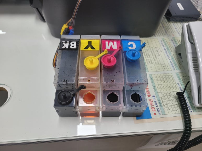 ● 공급기 내 잉크 부족 4색 잉크 보충 및 정압조정