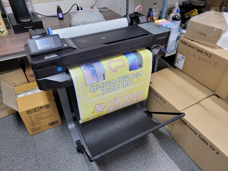 서울 용산구 한강로2가에 위치한 모바일 유통 총판 사무실로 HP 디자인젯 T120 무한잉크 임대설치 완료했습니다. 장기임대(1년 12개월이상), CMS 자동이체 계약완료했습니다.