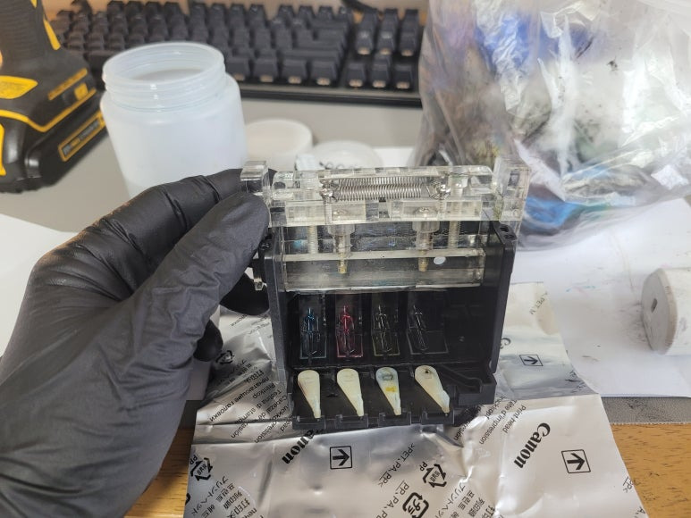 cf. 잦은 헤드 청소는 잉크손실, 내부오염, 헤드 노후화 및 칩판부 슈팅에어라인 비닐탈락, 챔버**터짐, 노즐 훼손, 헤드 챔버 내부 크랙 등 영향을 줍니다. 꾸준한 주기적인 4색 출력 관리가 필요합니다. 열분사 방식으로 잉크가 빠진 상태에서 사용시 헤드 노즐이 타서 망가질 수 있으니 사용자재 바랍니다