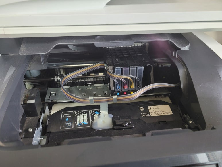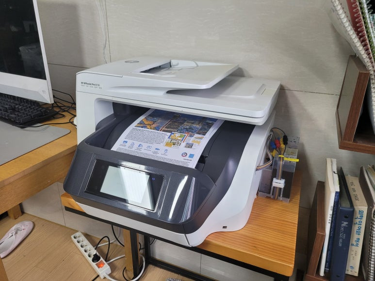 경기도 용인시 기흥구 소재, 회사 사무실에서 스캔, 복사, 팩스 및 문서 출력용으로 사용중인 HP OfficeJet Pro 8730 무한잉크 팩스복합기인데 잉크 카트리지 소모됨 문제로 출장수리 요청하여 스케줄 잡아 이동, 출장수리 완료했습니다.