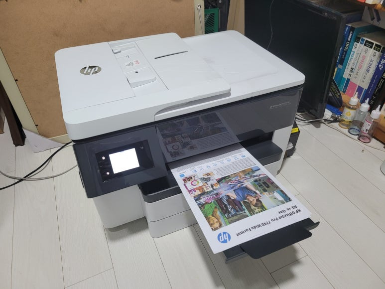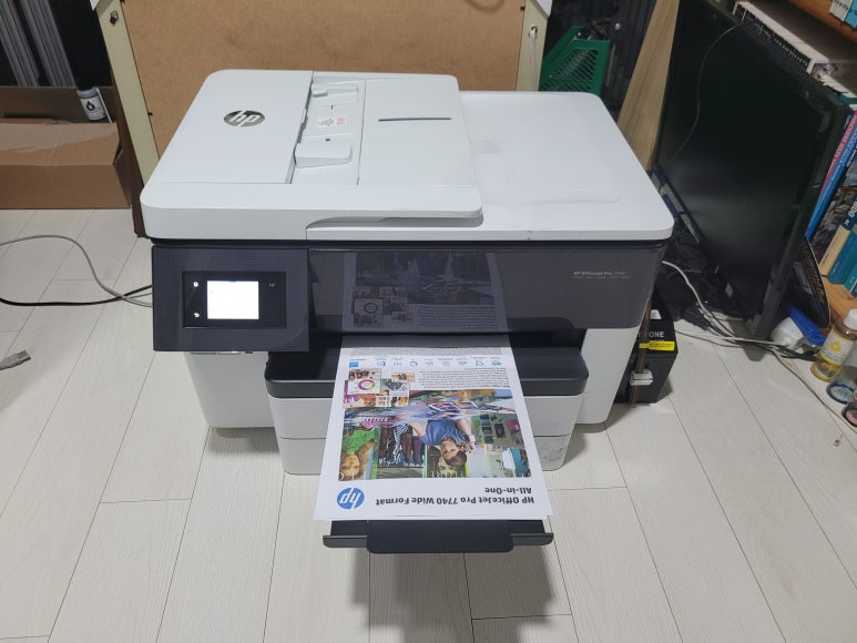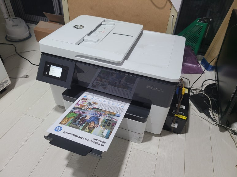 경기도 광주시 장지동 소재, 재택에서 A3 도면출력 및 스캔, 복사, 팩스 및 문서출력용으로 사용중인 HP 오피스젯 프로 7740 무한잉크 팩스복합기인데 소모품 시스템 문제로 출장수리 요청하여 스케줄 잡아 이동, 출장수리 완료했습니다.