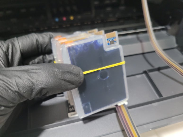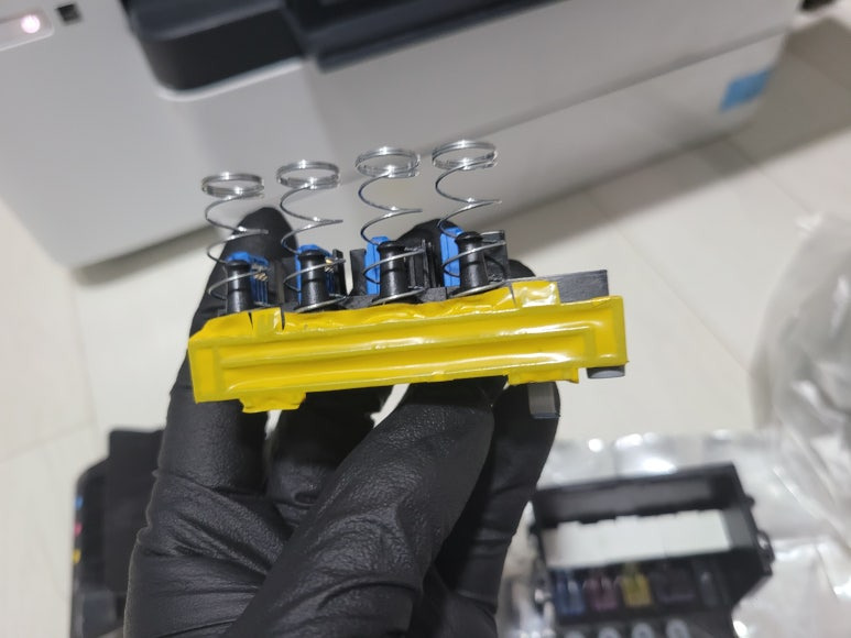 ● 프린터 헤드 챔버 터짐 탄성접착제 도포 및 테이핑