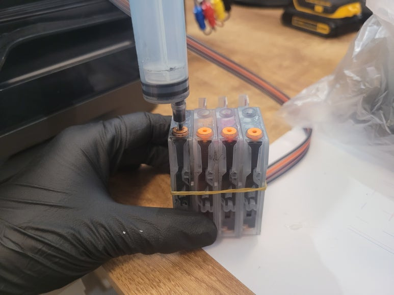 ● 카트리지 석션 및 잉크 차징, 부싱 패킹 공기유입 점검