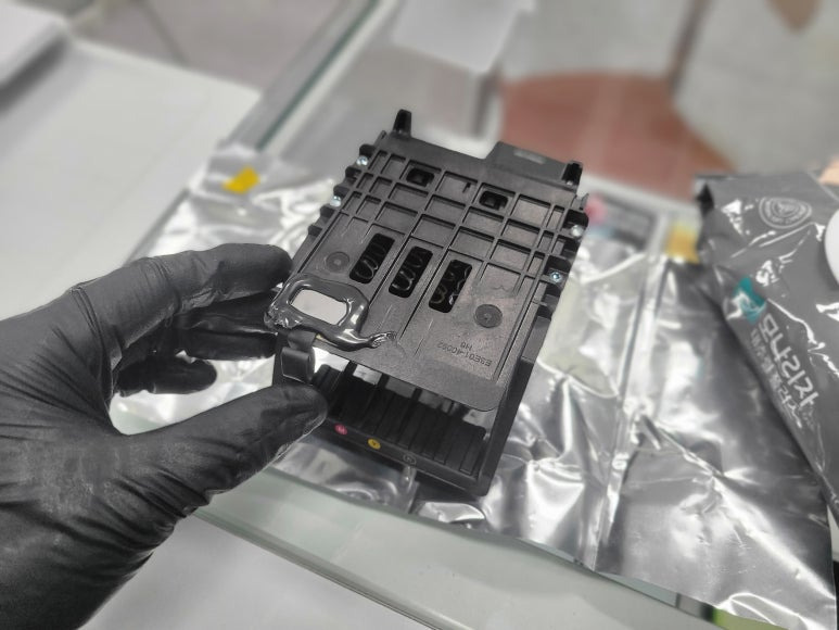 ● 프린터 헤드 챔버 터짐 탄성접착제 도포 및 테이핑