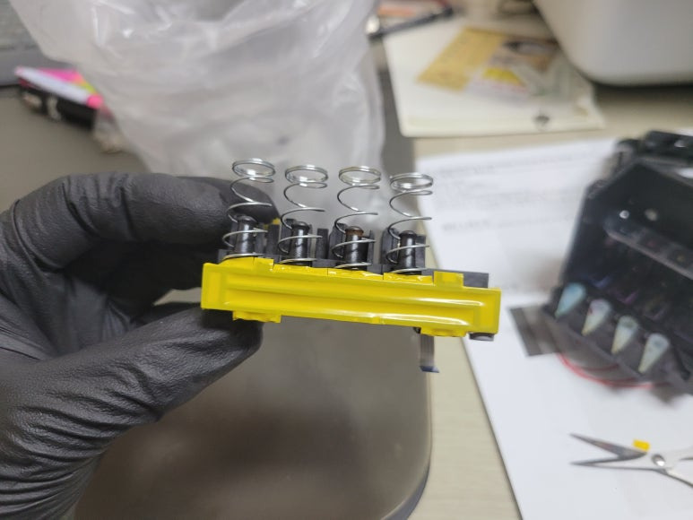 ● 프린터 헤드 챔버 터짐 탄성접착제 도포 및 테이핑