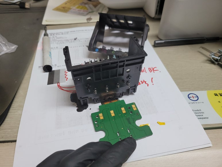 ● 프린터 헤드 PCB 크리닝 및 납땜쇼팅