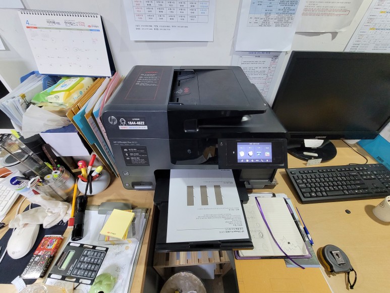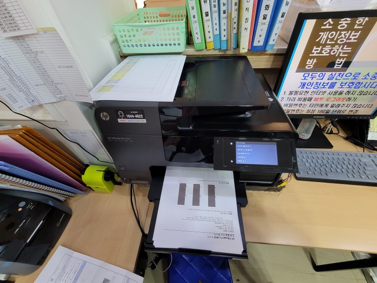 HP Officejet Pro 8630 e-복합기 프린터 시리즈 입니다. HP 오피스젯 프로 8630 무한잉크 1년 약정 (자동 CMS 계좌이체) 임대 설치입니다. 항상 나가면 책상도 깨끗하게 주변 서류도 정리정돈해드렸습니다. HP 오피스젯 프로 8630은 HP 8610 팩스복합기 보다 좀 더 빠르고, 액정이 좀 더 크고, 좀 더 안정적인 모델입니다. 현재는 단종되어 더이상 나오진 않지만, 임대 팩스복합기 무한잉크로 최상위, 최고급 모델이라고 해도 과언이 아닙니다.