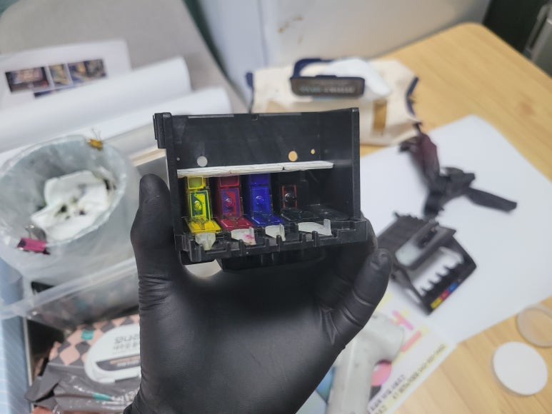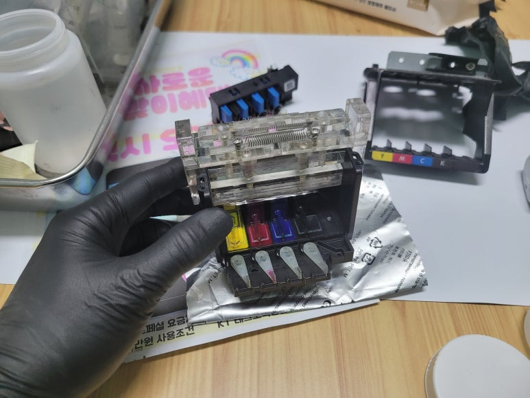 ● HP 711 프린트 헤드 챔버 탄성접착제 도포 및 테이핑 보강