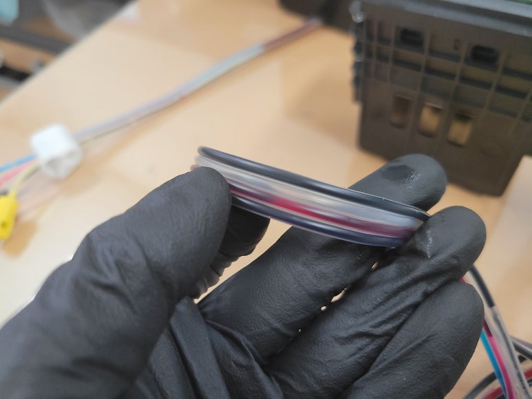 ● 프린터 헤드 클램프 부착 및 핫멜트 보강, 호스 재정리 장착