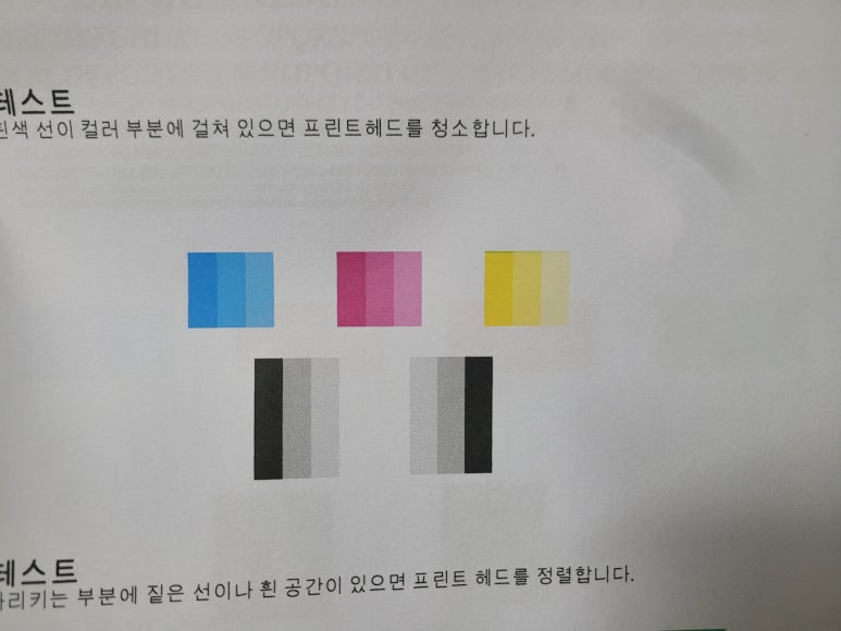 ⚠ 이상 시에만, 액정에서 설정 ➡ 유지 및 보수 ➡ 헤드청소 3단계 1회만 진행 (개선없다면 수리요청)