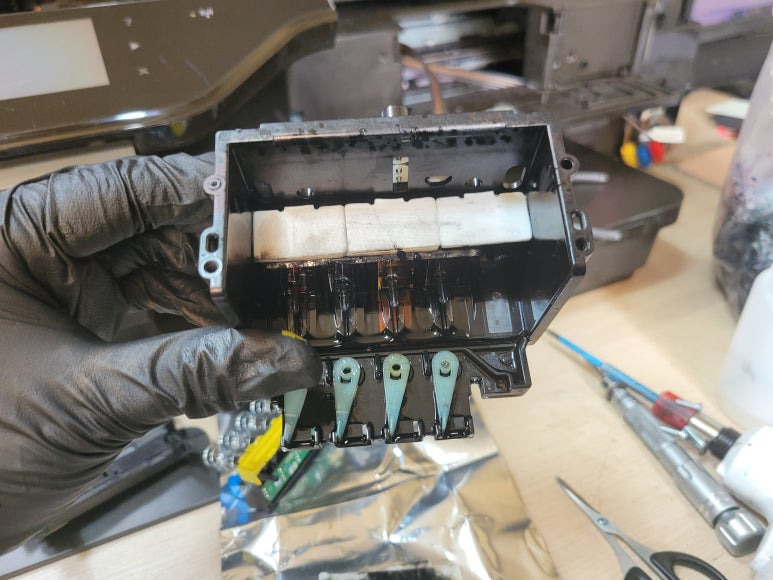 잦은 헤드 청소는 잉크손실, 내부오염, 헤드 노후화 및 칩판부 슈팅에어라인 비닐탈락, 챔버 터짐, 챔버 격벽 크랙 혼색, 노즐 훼손 등 영향을 줍니다. 헤드 격벽 크랙은 헤드 청소가 없더라고 사용중 충분히 생길 수 있는 부분이지만 잦은 헤드 청소는 더욱 빠른 노후 및 캠버 격벽 크랙을 가져 옵니다.