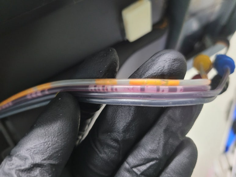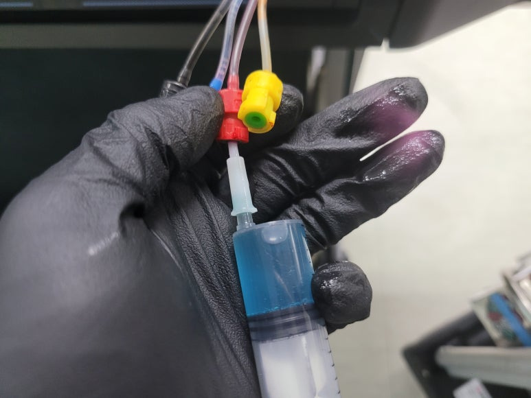 ● 공급기 잉크공급라인 호스 신규교체 및 카트리지 호스 세정액 주입 세척