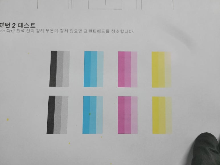 ⚠ 이상 시에만, 액정에서 설정 ➡ 유지 및 보수 ➡ 헤드청소 3단계 1회만 진행 (개선없다면 수리요청)