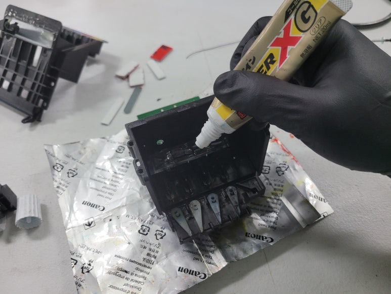 ● HP 711 프린트 헤드 챔버 탄성접착제 도포 및 테이핑 보강