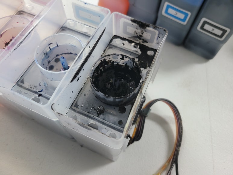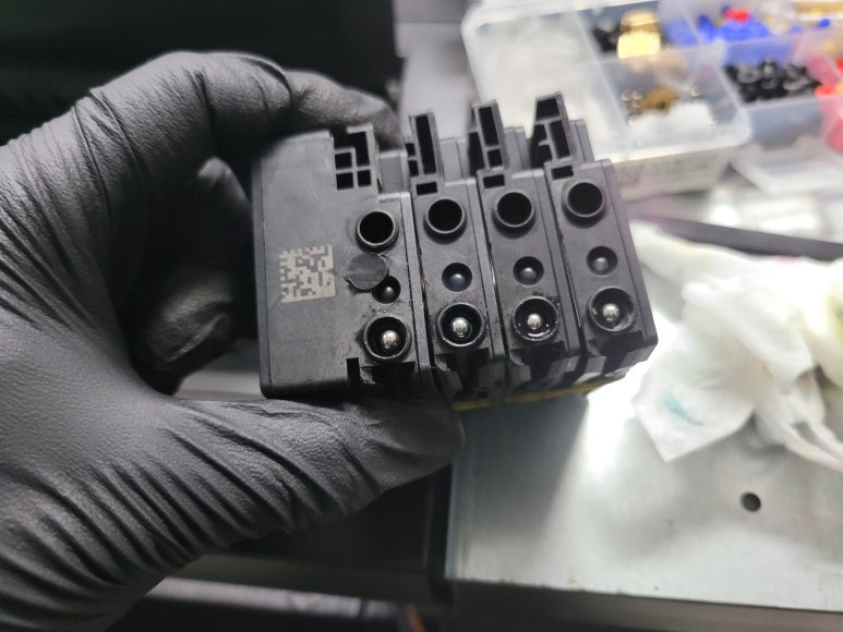 잦은 헤드 청소는 잉크손실, 내부오염, 헤드 노후화 및 칩판부 슈팅에어라인 비닐탈락, 챔버 터짐, 챔버 격벽 크랙 혼색, 노즐 훼손 등 영향을 줍니다. 헤드 격벽 크랙은 헤드 청소가 없더라고 사용중 충분히 생길 수 있는 부분이지만 잦은 헤드 청소는 더욱 빠른 노후 및 캠버 격벽 크랙을 가져 옵니다.