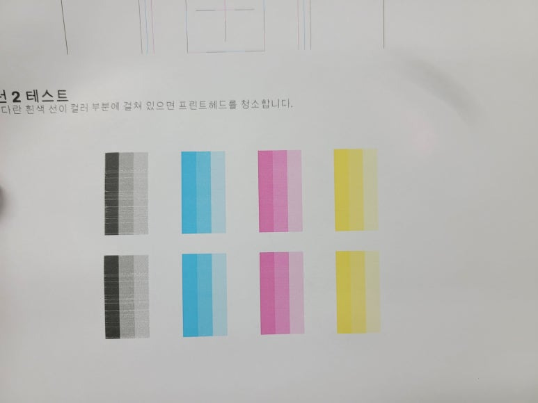⚠ 이상 시에만, 액정에서 설정 ➡ 유지 및 보수 ➡ 헤드청소 3단계 1회만 진행 (개선없다면 수리요청)