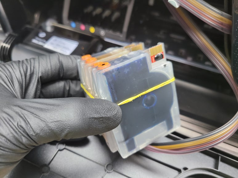 ● 프린터 헤드 챔버 터짐 탄성접착제 도포 및 테이핑