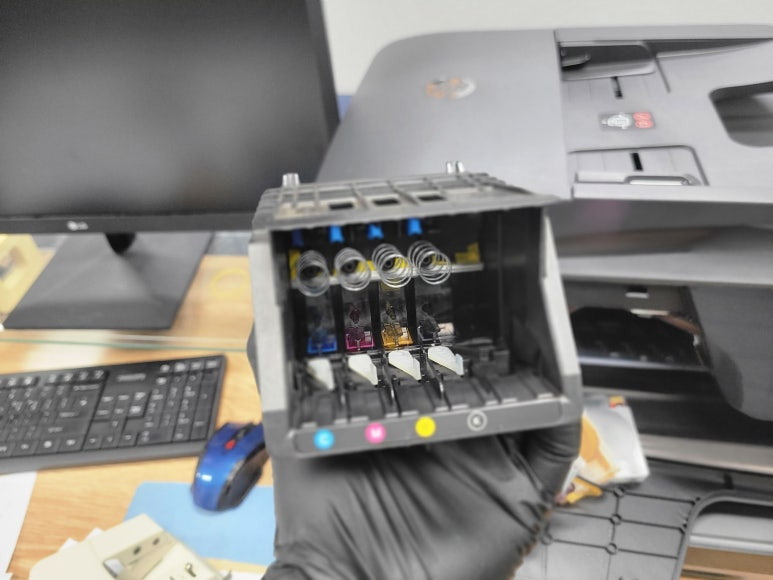 서울 강서구 마곡동 소재, 사무실에서 스캔, 복사, 팩스 및 문서출력용으로 사용중인 HP 오피스젯 프로 8710 무한잉크 팩스복합기인데 소모품 시스템 문제로 출장수리 요청하여 스케줄 잡아 이동, 출장수리 완료했습니다.