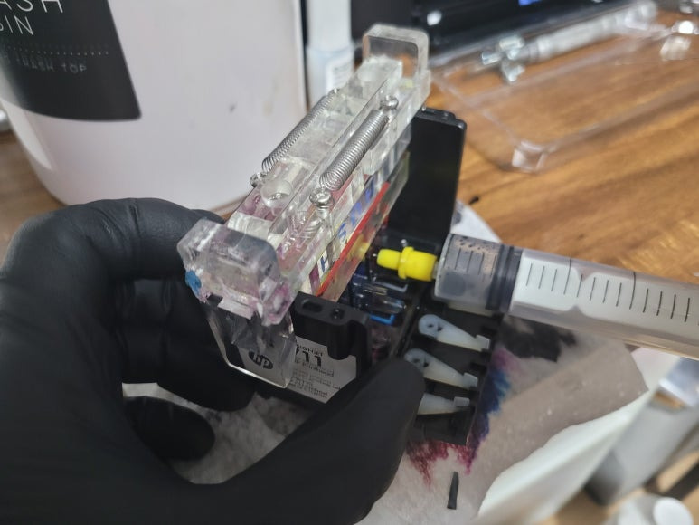 ● HP 711 프린트 헤드 챔버 탄성접착제 도포 및 테이핑 보강