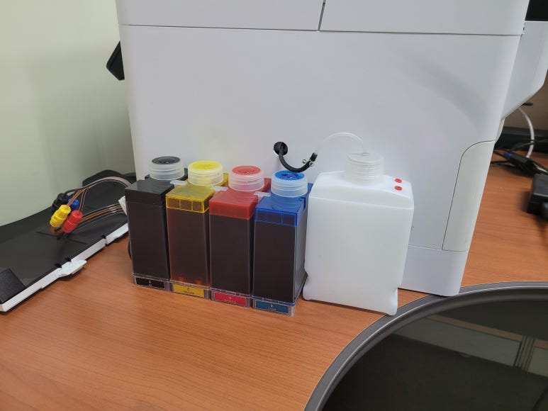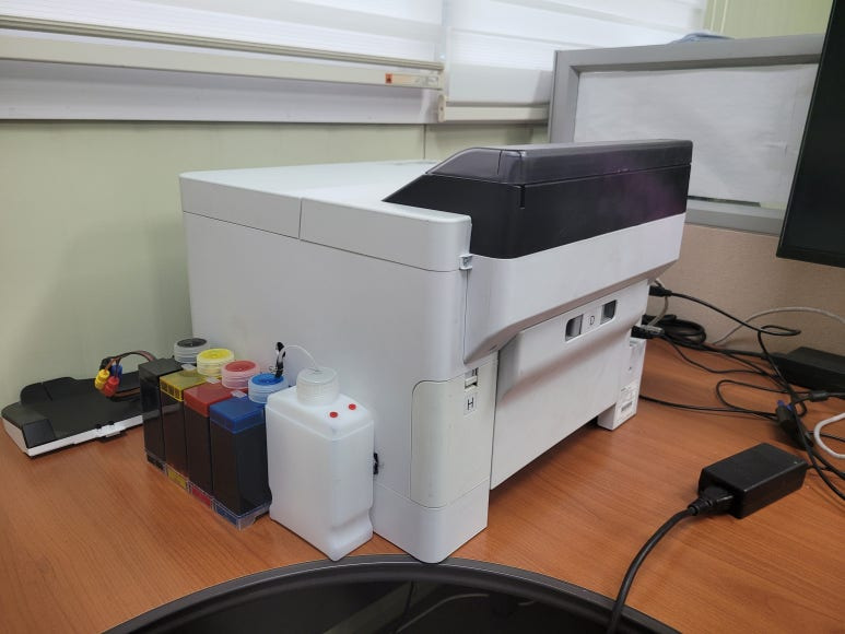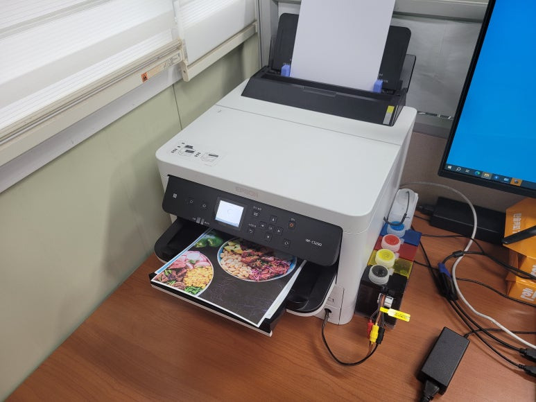 A4 프린터 출력용으로 사용하는 준고속기 엡손 WF-C5290 프린터인데 대용량 무한잉크를 설치요청하여 스케줄 잡아 이동, 출장장착 완료했습니다.