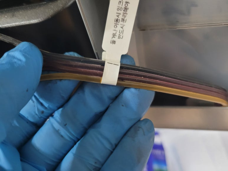 출력불량 및 잉크 카트리지 문제로 빠른 전체 점검 필요 이유 : 1. 호스 내 잉크 경화로 잉크공급 不 2. 카트리지 부싱 및 패킹 노후로 공기유입으로 잉크공급 不 3. 헤드 內 잉크공간 챔버 터짐 (칩판부 슈팅에어라인 비닐탈락, PCB 오염) 4. 스테이션 펌핑모터 불량으로 인한 잉크공급 不