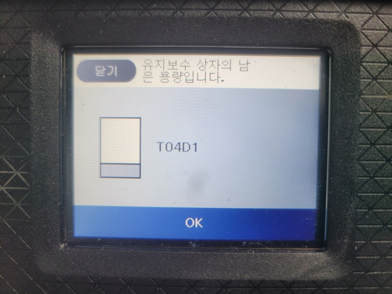 T04D1 유지보수 상자의 남은 용량이 거의 소진되어 있습니다.