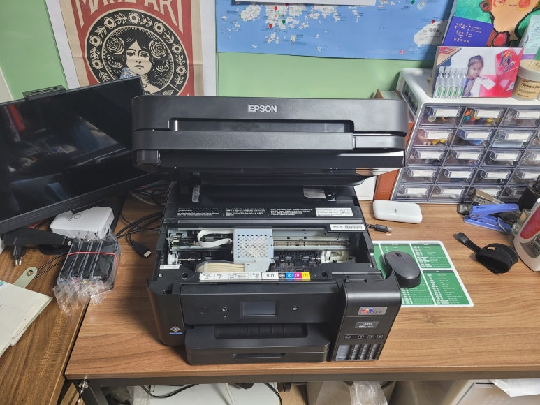 엡손 L6291 무한잉크 팩스 복합기인데 출력불량, 출장수리 요청으로 스케줄 잡아 이동, 수리 완료했습니다.