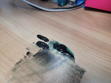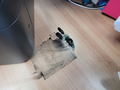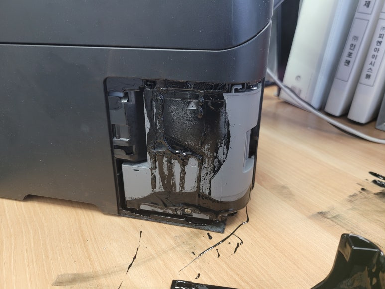 유지보수상자에 폐잉크가 넘쳐 오염되어 있습니다.