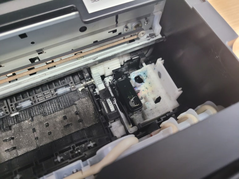 카트리지 내부잉 잉크가 빠져 석션하여 차징, 잉크를 채웠습니다.