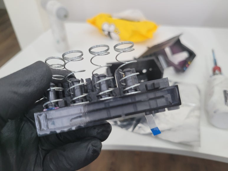● 프린터 헤드 챔버 터짐 탄성접착제 도포 및 테이핑