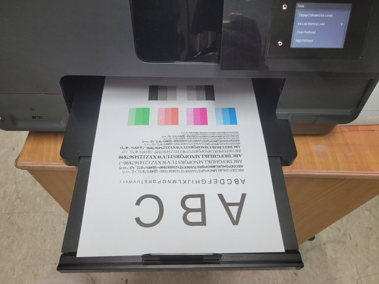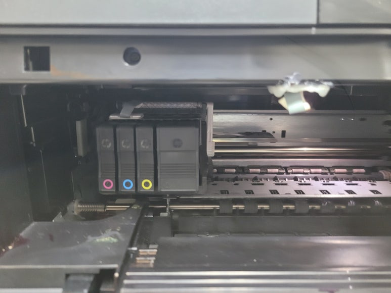 서울시 강동구 길동 소재, 사무실에서 정품 카트리지 장착 사용하는 HP OfficeJet Pro 8610 팩스복합기인데 출력상태 불량하여 출장수리 요청, 스케줄 잡아 이동 팩스복합기 잉크젯 프린터 출장수리 완료했습니다.