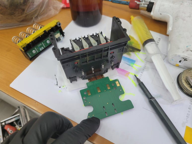 ● HP 711 프린트 헤드 분해 칩판부 비닐탈락 수리