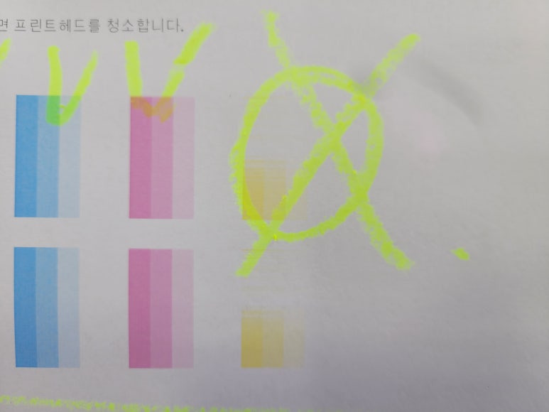2) 매일 체크하지 않으면 노즐이 미세하게 막히면 헤드 청소를 해야 하는데 헤드청소시 이때, 잉크가 정말 많이 사용됩니다. 잉크 낭비까지 생각한다면 평소 출력해 체킹하는 게 좋습니다.(고지혈/동맥경화시 의료비가 듭니다)