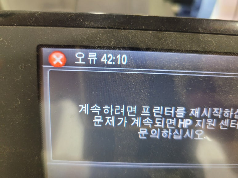 모바일 판매 유통 대리점에서 포스터 및 POP, 홍보물 출력용으로 사용하는 HP DesignJet T120 24인치 플로터 A1 출력 무한잉크인데 오류 42:10 발생으로 출장수리 요청하여 스케줄 잡아 방문 출장 수리를 완료했습니다.
