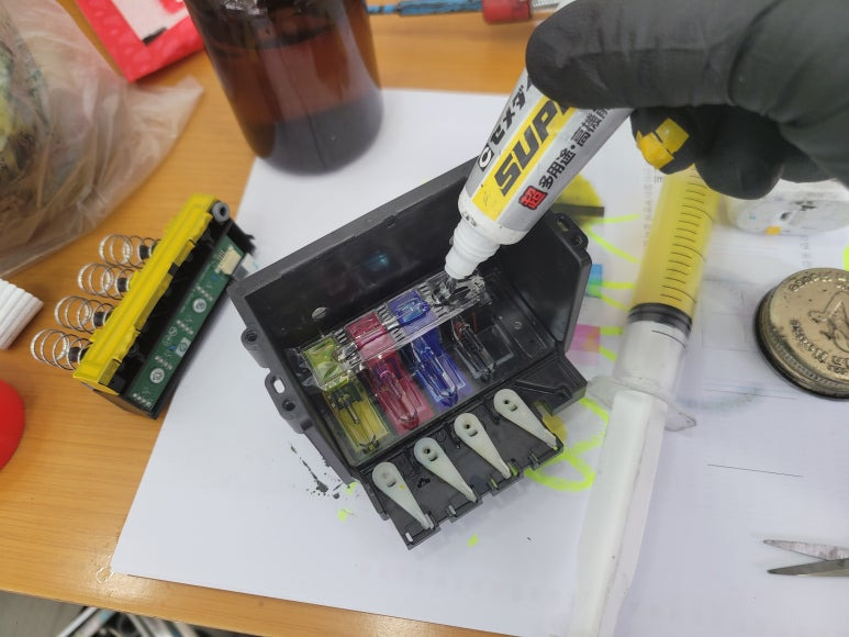 ● HP 711 프린트 헤드 챔버 탄성접착제 도포 및 테이핑 보강