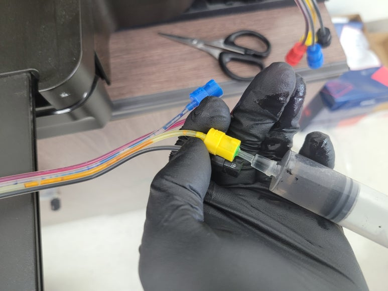 ● 잉크 경화된 호스 내 세정액 주입 세척