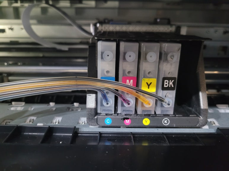 cf. 잦은 헤드 청소는 잉크손실, 내부오염, 헤드 노후화 및 칩판부 슈팅에어라인 비닐탈락, 챔버**터짐, 노즐 훼손, 헤드 챔버 내부 크랙 등 영향을 줍니다. 꾸준한 주기적인 4색 출력 관리가 필요합니다. 열분사 방식으로 잉크가 빠진 상태에서 사용시 헤드 노즐이 타서 망가질 수 있으니 사용자재 바랍니다.