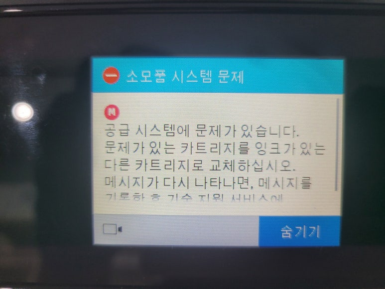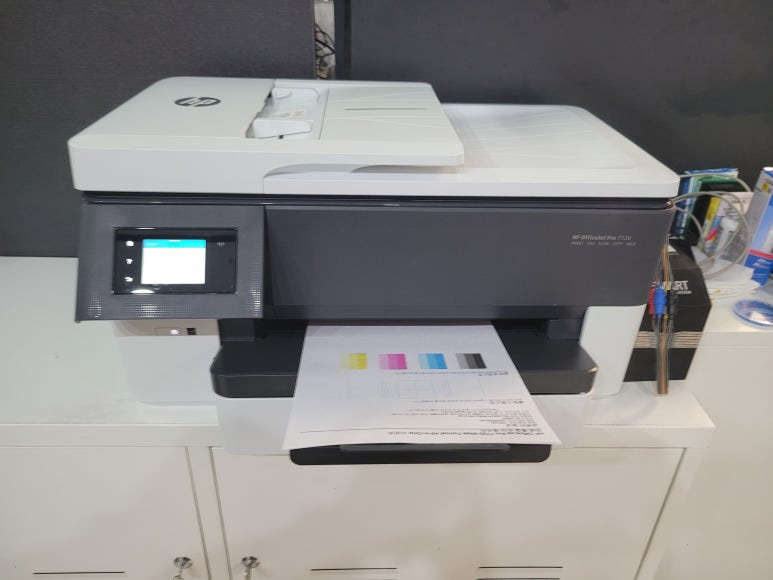 HP OfficeJet Pro 7720 팩스복합기 무한잉크 장치는 소모품 시스템 문제 및 공급 시스템 문제는 전면 커버를 열었다 닫았다 3회 진행하면 카트리지 확인 후 정상 작동됩니다.